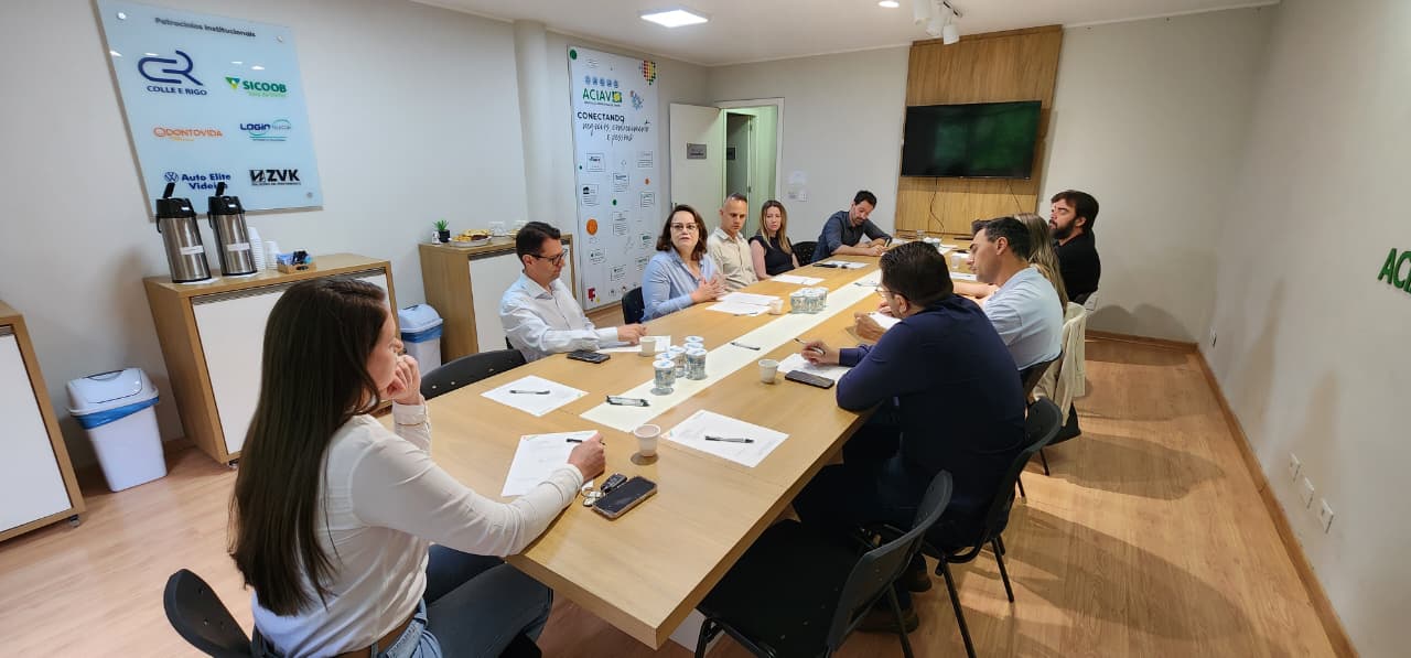 Após a apresentação, os diretores da ACIAV debateram temas internos e regionais, incluindo o andamento das ações do Voz Única, a criação de um grupo de trabalho para acelerar pautas prioritárias e estratégias para fortalecimento da representatividade regional nas próximas eleições.